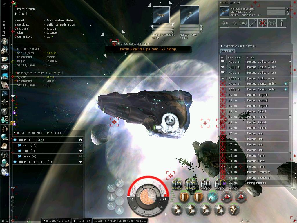 最近の動向は、さすがにもうすぐ3年を超える0.0生活に浴びた宇宙放射線のおかげで、ついに頭がパ~になりFWに手を出す始末。なけなしのISKで立てた老人ホーム(Outpost)も失い、路上生活まっしぐら中。