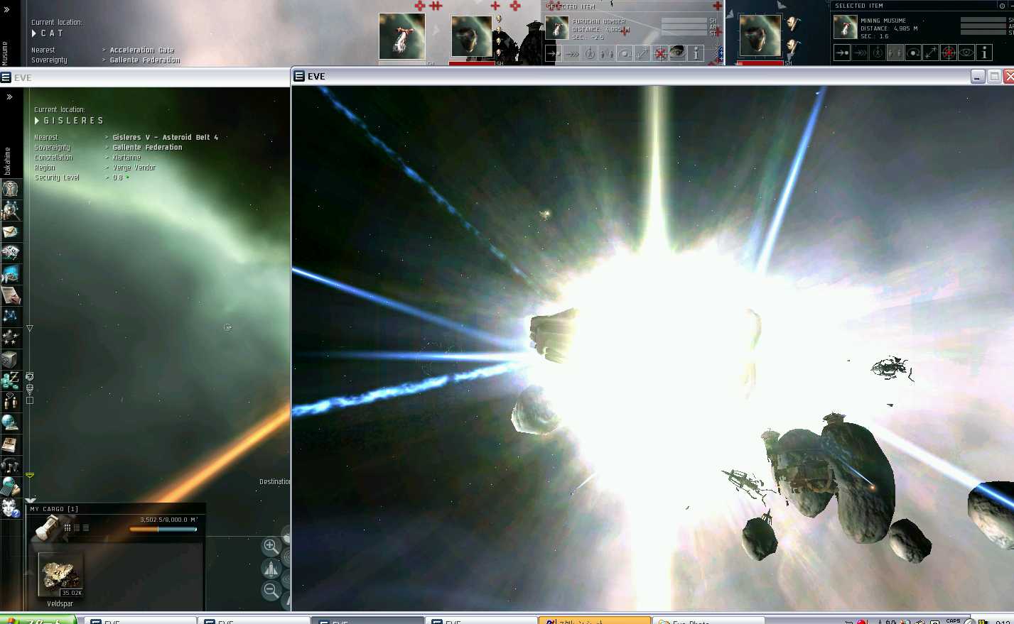実は私、だまされてここにきたEVE史上初?!のPlayerです。そしてさらに当時のEVEのチュートリが悪かったせいか、Missionのやり方てんでわかず、彼に言われるままにINN1月もたたずに、引き連れてきた友人とLowでいそいそMining...やがてその友人も1人消えてまた一人・・Highに出てきたのはその半年後、そのときに知り合った某JPCorpのCEOに初めてMissionの仕方を教えてもらったという・・・おかしなおかしな経験を持っています。