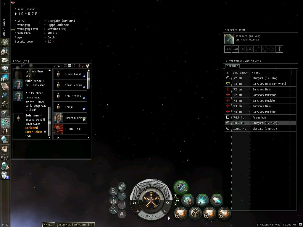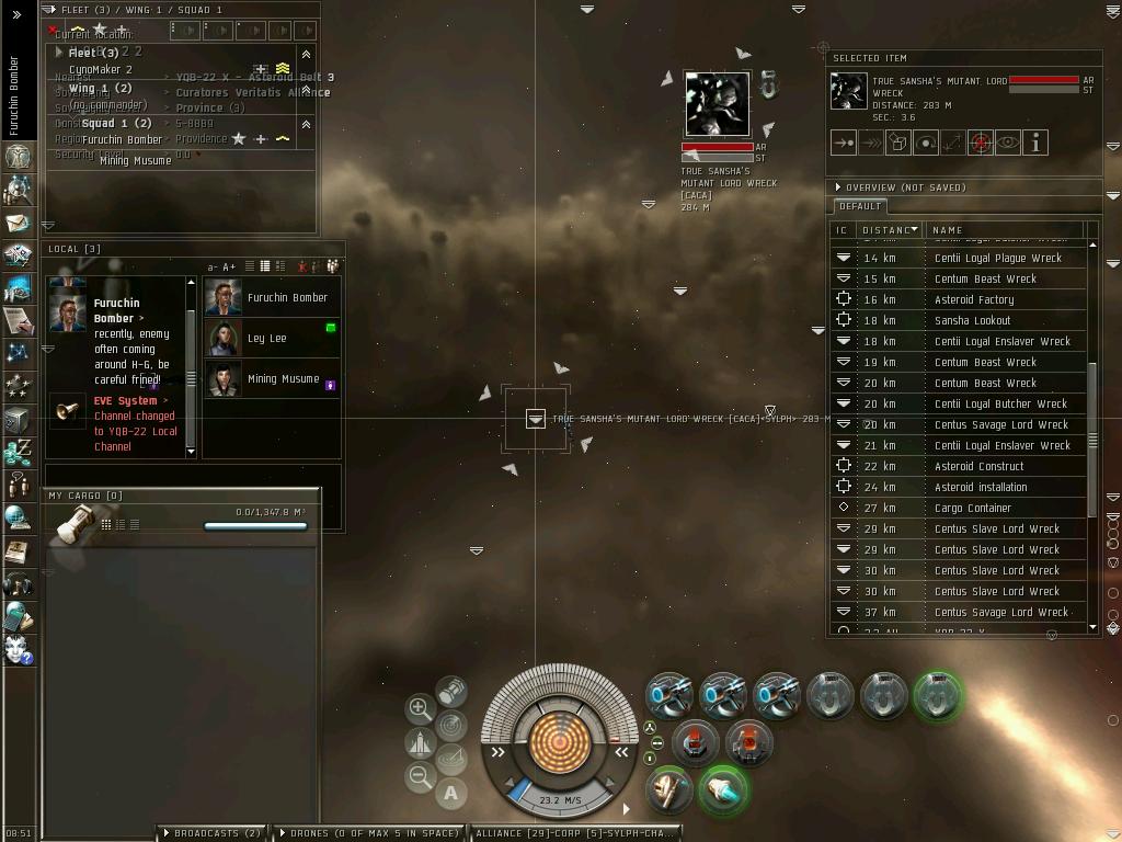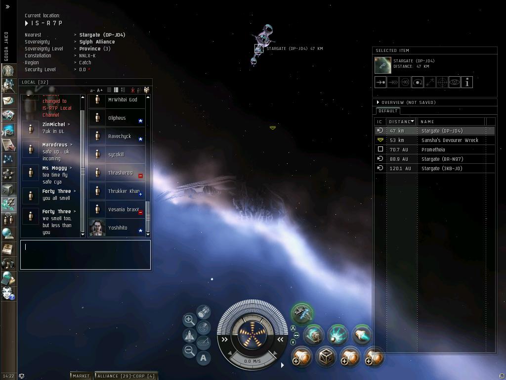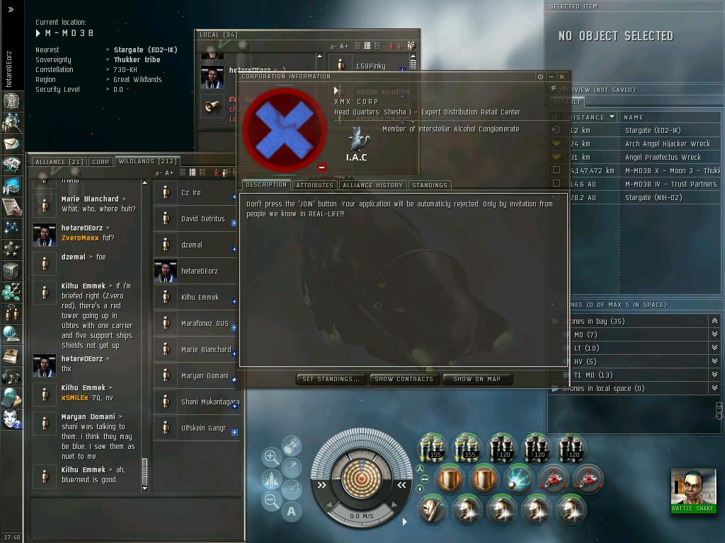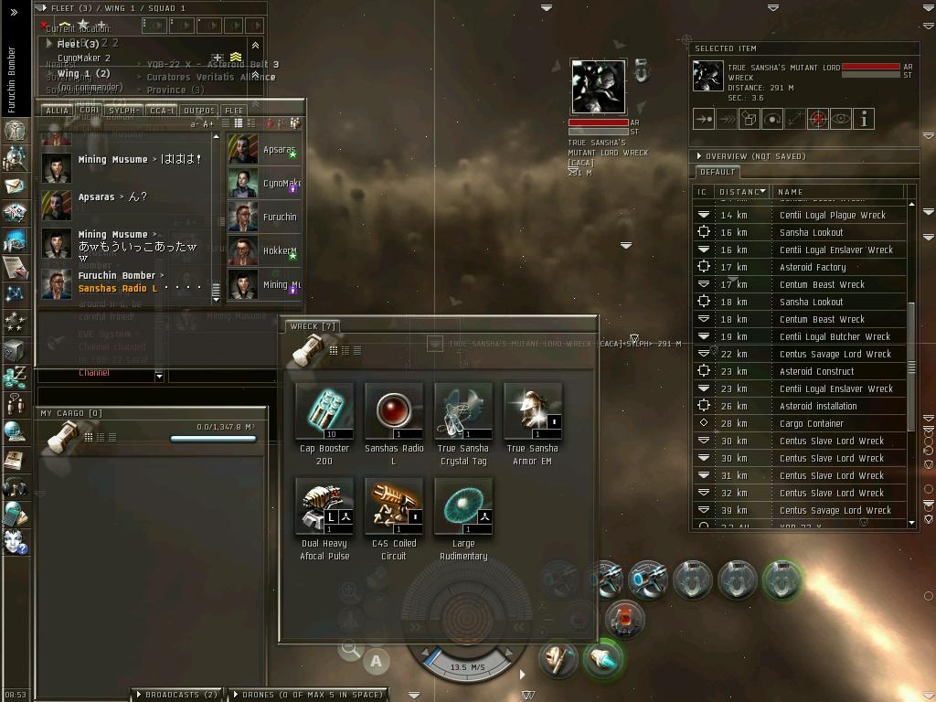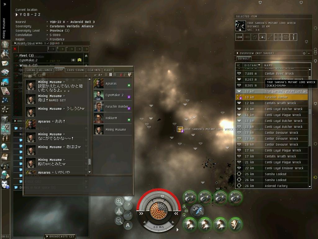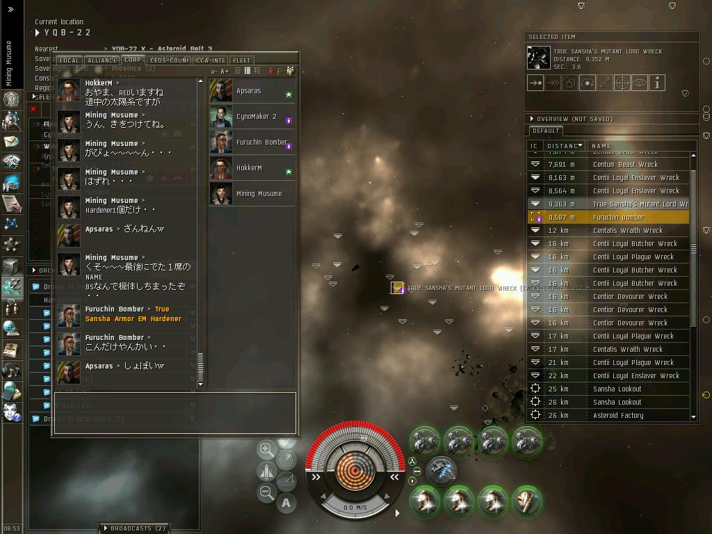 最近の動向は、さすがにもうすぐ3年を超える0.0生活に浴びた宇宙放射線のおかげで、ついに頭がパ~になりFWに手を出す始末。なけなしのISKで立てた老人ホーム(Outpost)も失い、路上生活まっしぐら中。