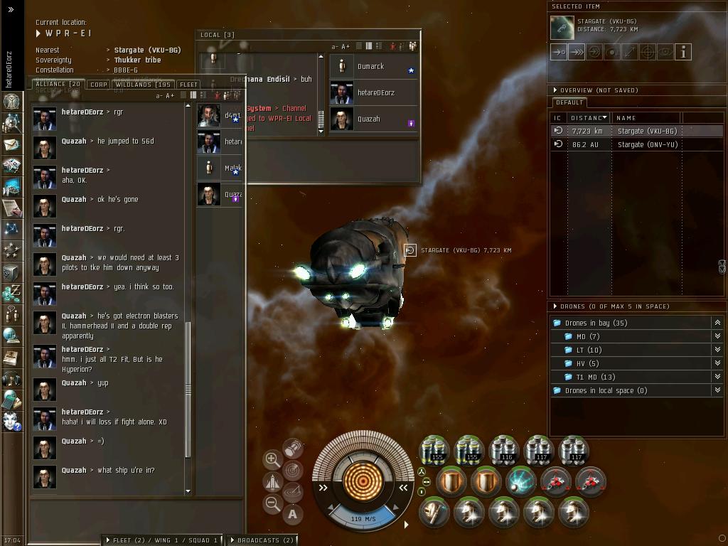 やっとこさ、向かったWPRに敵がきた模様。あわててSYSをそっちに移動!でも~~・・・ついたときにはREDは完全にAway。しかもALLY CHの報告では相手はHyperion。どうやら相手は常連らしく、T2FitのHyperionと同じくDomiで勝負・・・・