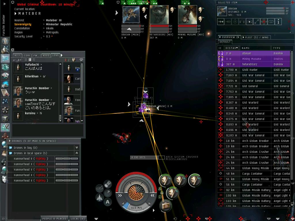 最近の動向は、さすがにもうすぐ3年を超える0.0生活に浴びた宇宙放射線のおかげで、ついに頭がパ~になりFWに手を出す始末。なけなしのISKで立てた老人ホーム(Outpost)も失い、路上生活まっしぐら中。